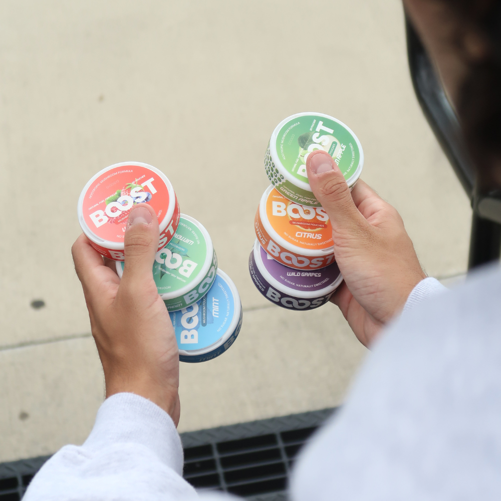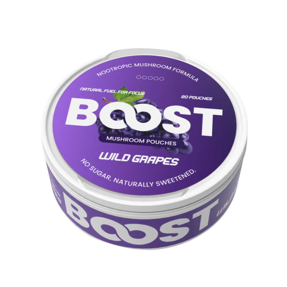 Instead of relying on addictive stimulants for a quick buzz, Boost Pouches give you steady focus powered by natural ingredients like Lion’s Mane, Cordyceps, Reishi, Alpha GPC, And more!