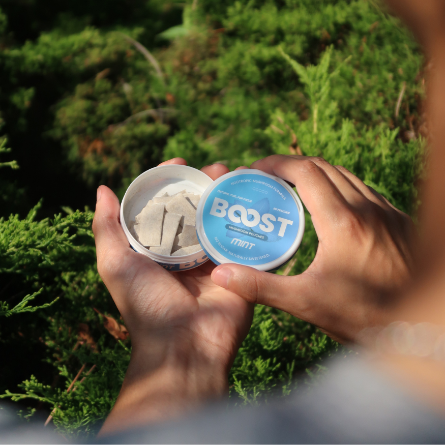 No, there’s no need to spit with Boost mushroom pouches. Unlike nicotine pouches, Boost is made from natural, safe ingredients, so you can comfortably swallow the saliva without any risk of nausea or discomfort. Enjoy the benefits hassle-free!