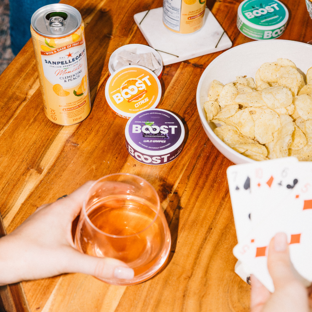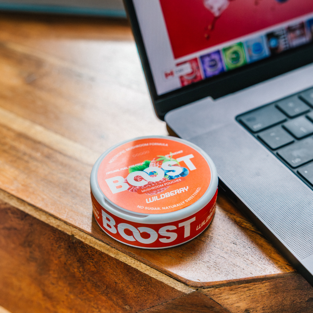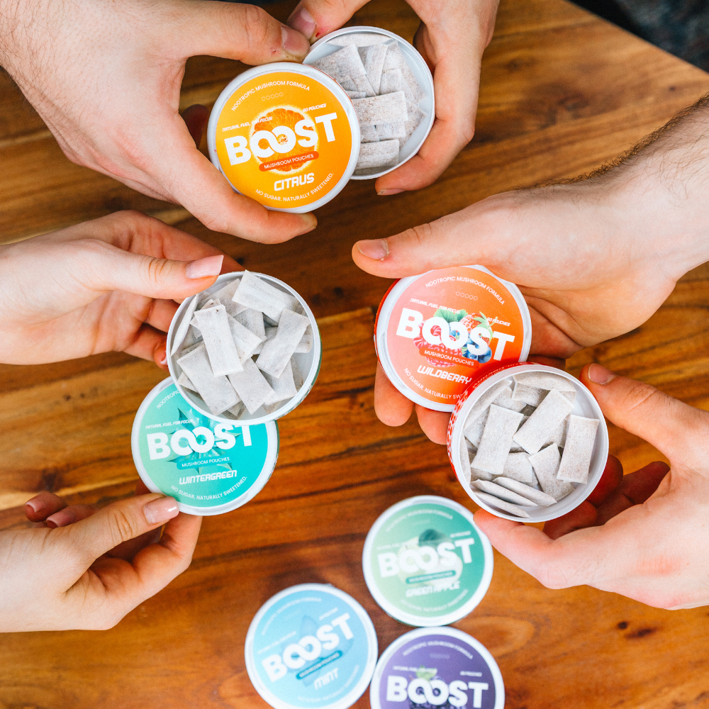 Instead of relying on addictive stimulants for a quick buzz, Boost Pouches give you steady focus powered by natural ingredients like Lion’s Mane, Cordyceps, Reishi, Alpha GPC, And more!